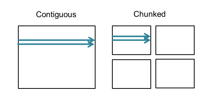It is also commonly used when subsetting very large datasets. Using the chunking layout can greatly improve performance when subsetting large datasets, because only the chunks required will need to be accessed. However, it is easy to use chunking without considering the consequences of the chunk size, which can lead to strikingly poor performance.