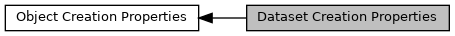 Use dataset creation properties to control aspects of dataset creation such as fill time, storage layout, compression methods, etc. Unlike dataset access and transfer properties, creation properties are stored with the dataset, and cannot be changed once a dataset has been created.